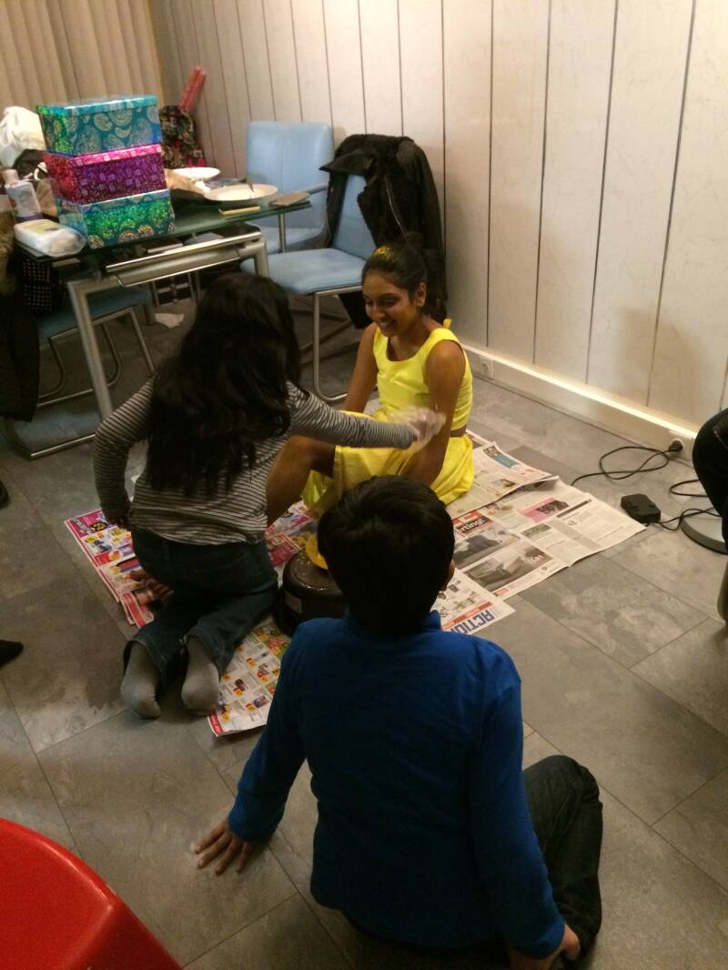 Op deze dag hebben alle vrouwen haldi (kurkuma pasta) gezet op mijn nicht. Ook mocht ik haar insmeren met haldi.