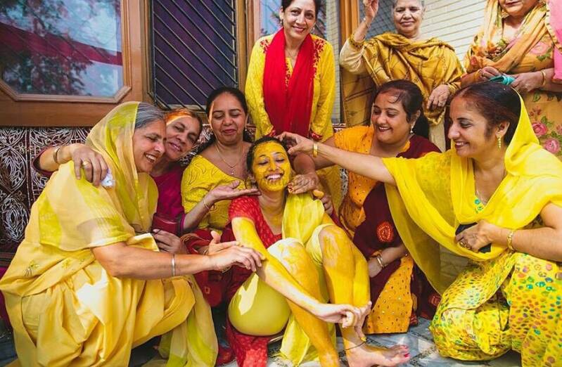 Insmeren van bruid met haldi (kurmuma pasta) Haldi (kurkuma) pasta