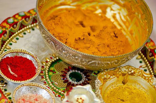 Ook is deze dag de haldi ceremonie. De bruid en bruidegom worden door de vrouwen uit hun familie ingesmeerd van top tot teen met een pasta gemaakt van water, olie, ongekookt rijstkorrels en haldi (kurkuma). Haldi (kurkuma) hydrateert en geeft de huid rust. Het is dus een soort van beauty behandeling. Hierna gaan de bruid en bruidegom douchen en maken ze zich klaar voor de Bhatwaan.