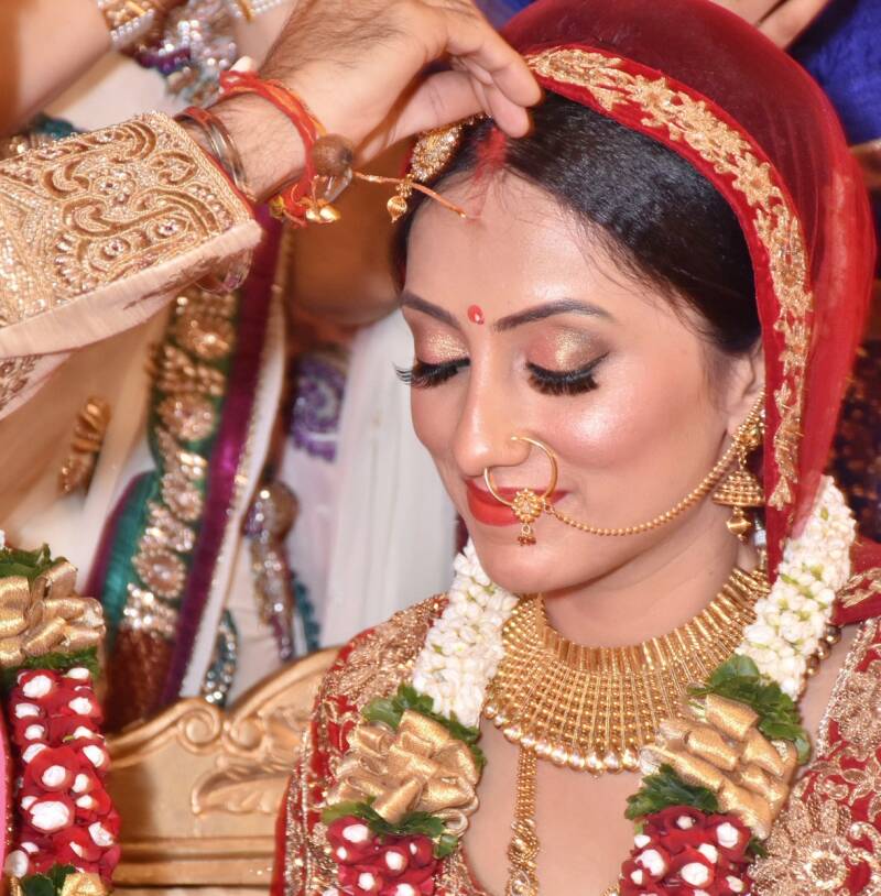 De sindhoor daan: De man brengt sindhoor (rood poeder) aan in de scheiding van het haar van de bruid. Dit is een teken dat zij een getrouwde vrouw is.
