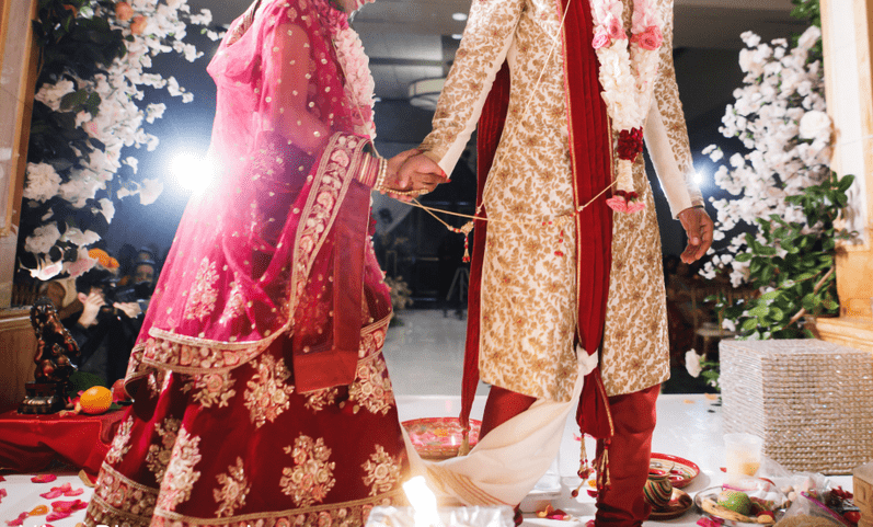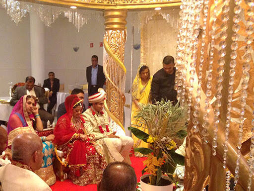 Naast een Hindoestaanse huwelijksceremonie trouwt het bruidspaar ook voor de wet. Dit is vaak 2 weken voor of na de Hindoestaanse huwelijksceremonie. Na elkaar het ja-woord te hebben gegeven wordt er in het groot in een zaal een receptie gehouden.